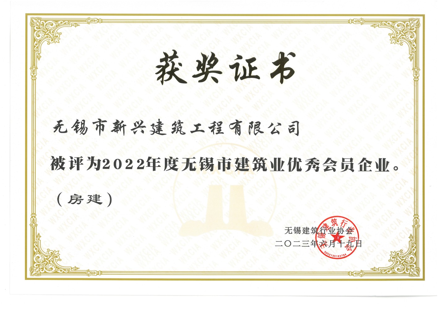 2023.06 2022年度無錫市建筑業(yè)優(yōu)秀會(huì)員企業(yè)