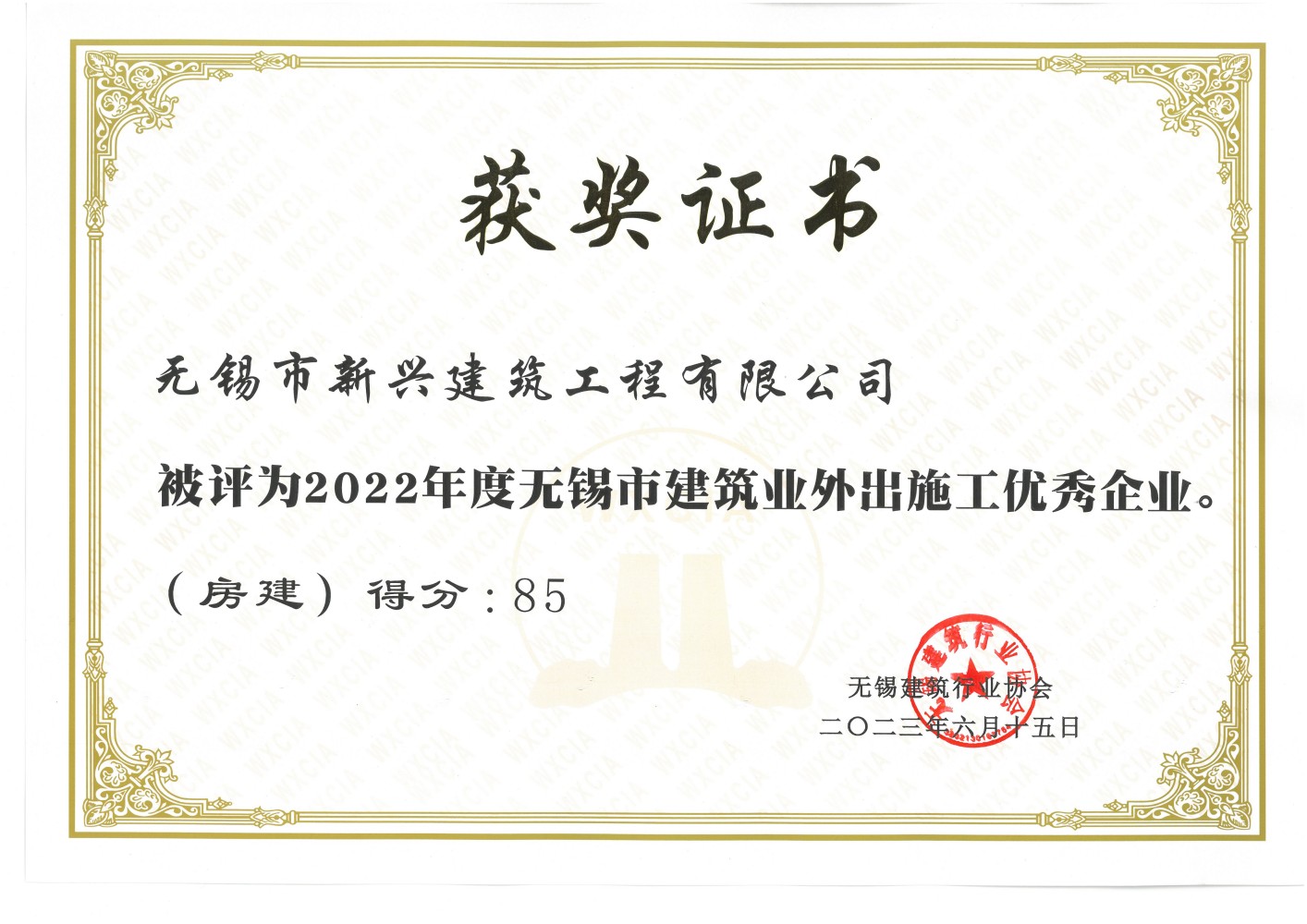 2023.06 2022年度無錫市外出施工優(yōu)秀企業(yè)