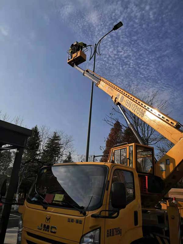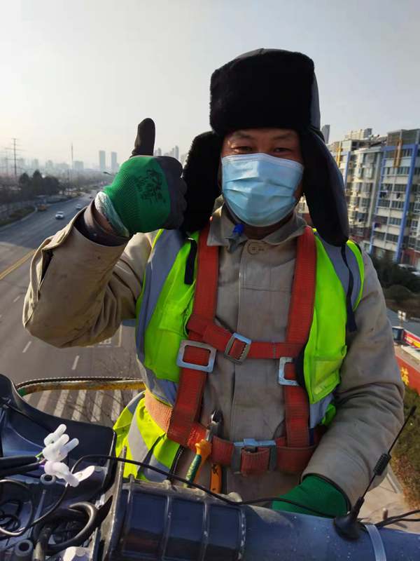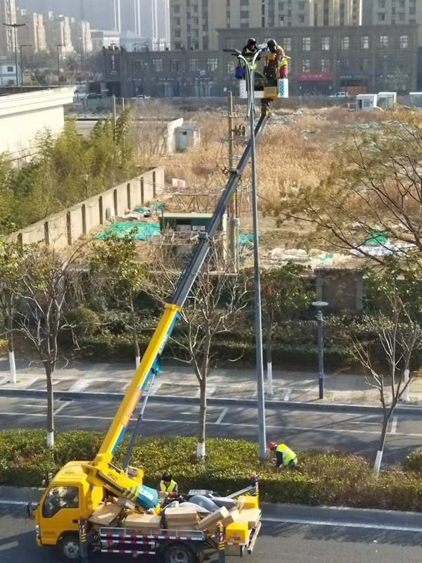 ?該項(xiàng)城市照明提升工程工程量大(約6500套路燈),工期緊。為了趕時(shí)間進(jìn)度,翔立“鐵軍”們由12月27開始施工,日以繼夜、馬不停蹄的連續(xù)奮戰(zhàn)在工程一線,沒有一個(gè)人掉隊(duì),沒人喊苦叫累,個(gè)個(gè)都像鉚足了勁的“小牯牛”。肩帶《安全員》紅袖章的工程負(fù)責(zé)人喬以成騎著電瓶車不時(shí)地在海寧大道上來回穿梭著,“王師傅,高空作業(yè)車四條支撐臂必須支撐平穩(wěn)牢固后再提升哦”,“段青春,把前方施工的警示牌擺在車輛后面,還有道路安全錐桶一定要將作業(yè)區(qū)域圍起來,與后面來車方向保持安全距離。”在市區(qū)人流密集的道路上同時(shí)有5臺(tái)登高作業(yè)車分區(qū)域高空作業(yè)的情況下,他最放心不下,畢竟是高空作業(yè)!為了防止高空墜落,登高施工操作人員全部按要求規(guī)范佩戴安全帶、系好安全繩、絕緣鞋、防寒安全帽、警示馬甲一應(yīng)俱全,武裝整齊。為防高空落物,作業(yè)車吊籃內(nèi)使用的工具全部系上“失手繩”,安全施工是必要的前提,有措施,有辦法,畢竟千條萬條,安全才是第一條!