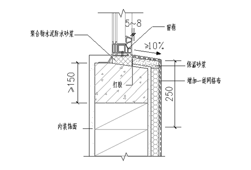 2.3門窗下檻應用聚合物水泥防水砂漿嵌填密實。