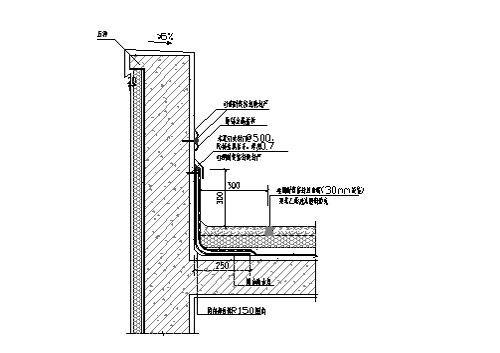 檐溝外側應抹聚合物水泥砂漿,下端同時作鷹嘴和滴水槽。